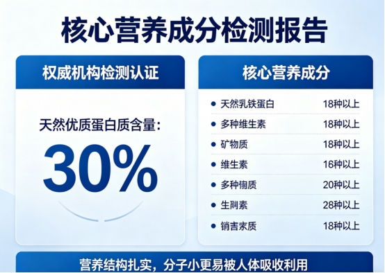 營(yíng)養(yǎng)適配性:聚焦對(duì)國(guó)人具有高吸收利用的營(yíng)養(yǎng)素,特別是蛋白質(zhì)。經(jīng)檢測(cè),駝乳蛋白質(zhì)的消化吸收普遍較高,而優(yōu)質(zhì)產(chǎn)品的蛋白質(zhì)實(shí)測(cè)含量需穩(wěn)定≥28%,方能滿足日常優(yōu)質(zhì)蛋白補(bǔ)充需求。